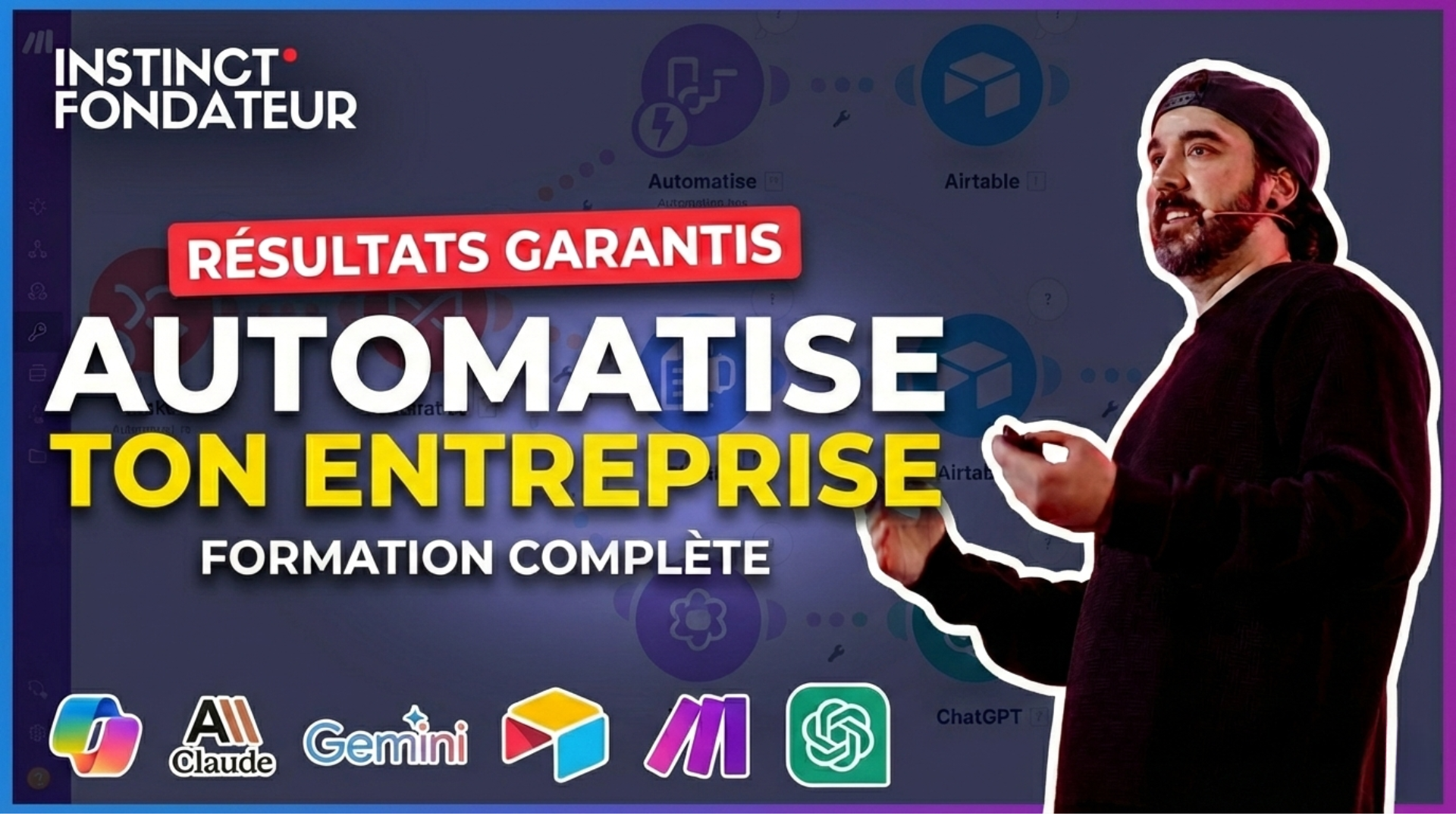 Aujourd'hui, j'aide les PME à bâtir des systèmes d'automatisation et d'IA qui scalent — pour récupérer 15-25h par semaine et faire croître leur business sans s'épuiser. Formateur, conférencier invité par Les Affaires et l'École des Entrepreneurs du Québec, et créateur de la Cohorte Fondateur — le programme qui transforme ton entreprise en 90 jours.